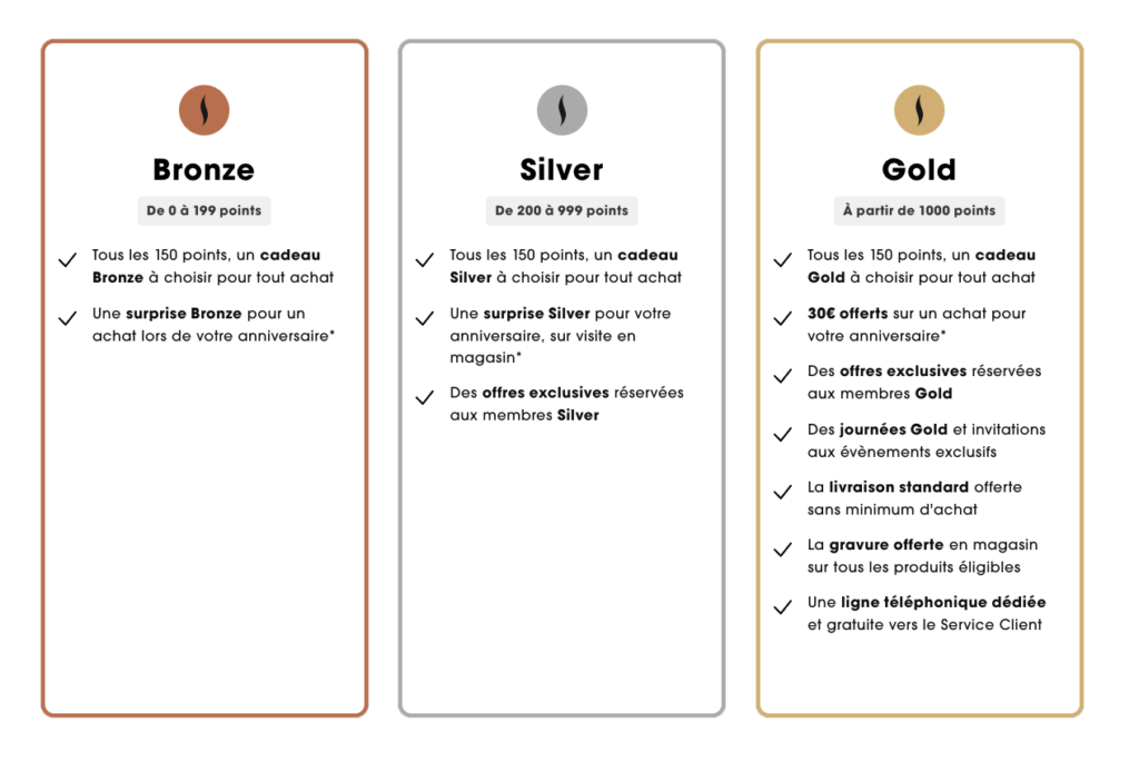 Le programme repose sur une mécanique de statuts de fidélité claire et motivante :